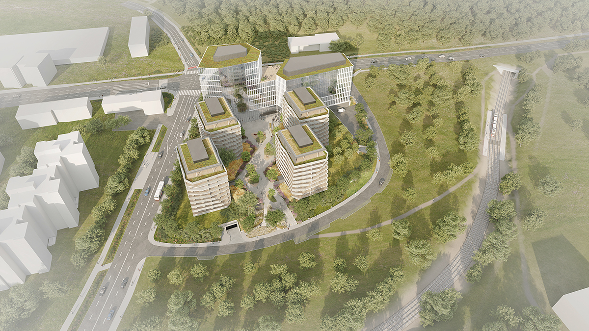 The symbiosis of administrative and residential buildings arranged around a modern courtyard creates a unique local centre with excellent accessibility at the corner of Dlouhá and Jihlavská streets. The richly equipped multifunctional campus with magnificent views of the centre and the Pálava ridge combines employment opportunities with comfortable living. Its modern architecture makes it the gateway to Brno-Bohunice.