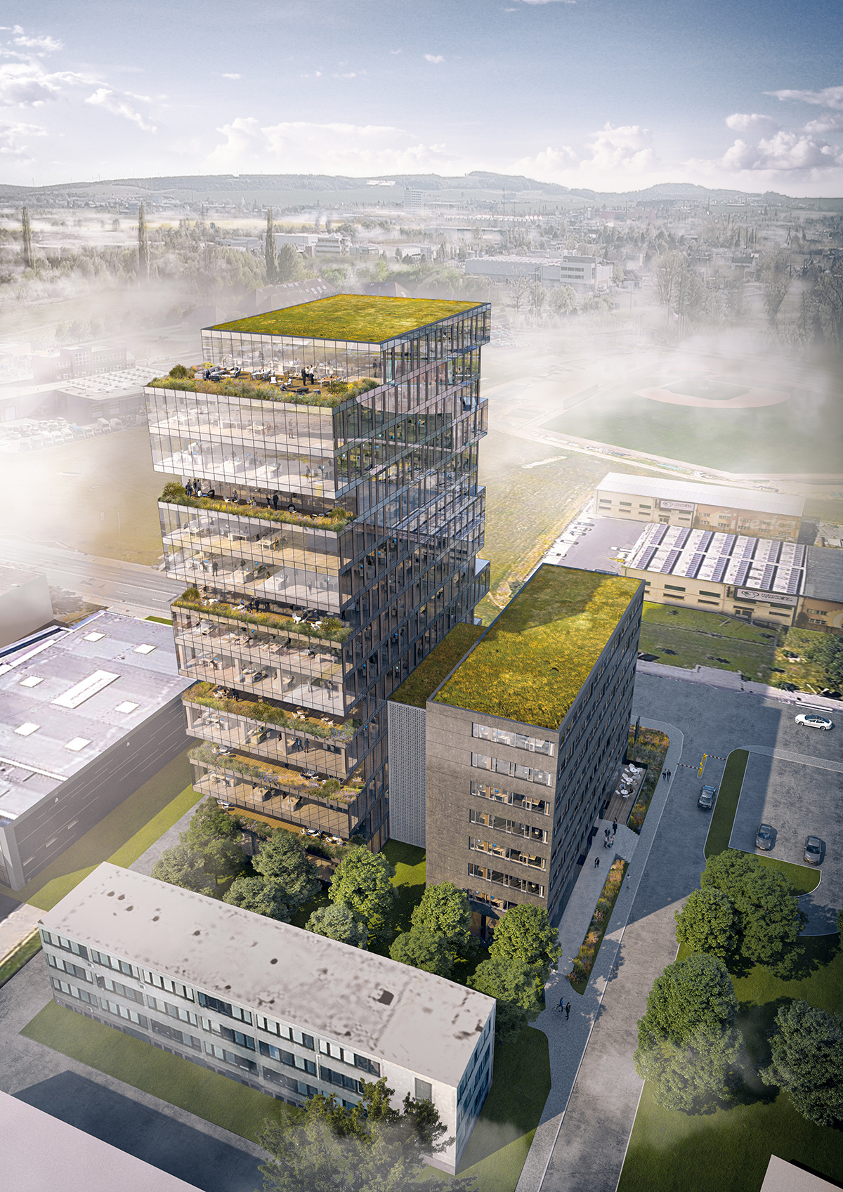 Sestava budov reaguje a plynule navazuje na živý veřejný prostor v okolí. Propojení obou věží krčkem zvětší pronajímatelnou plochu a také umožní jednotnou recepci, což nahrává ekonomickému aspektu projektu.