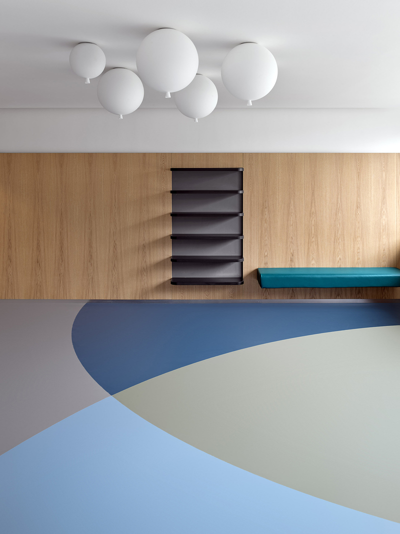 Dříve separované oddělení pediatrie se podařilo propojit s hlavním vstupem. Dětská část byla rozšířena o dvě nové ordinace s čekárnou, jedna z nich je s ohledem na malé pacienty navržena s organicky tvarovaným linoleem na podlaze a originálními svítidly.